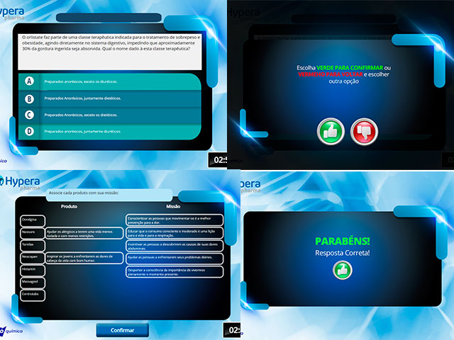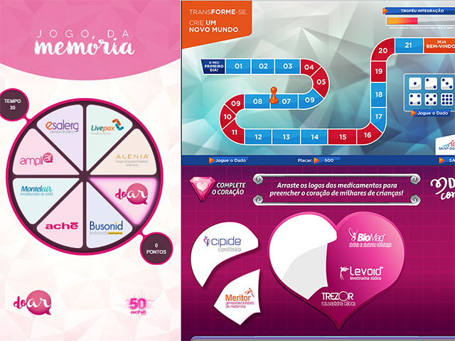 Aplicativos em Android e Scorms, jogos em HTML5 e JavaScript integrados ao Facebook.